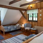 Consisting of a balcony and a seating area, the Lovrenc na Pohorju property offers comforts like ironing facilities, along with a television. The interior elements include a sofa set, as well as a stone fireplace. Featuring a walk-in shower and a separate toilet, the bathroom also comes with hair dryers and bath sheets.